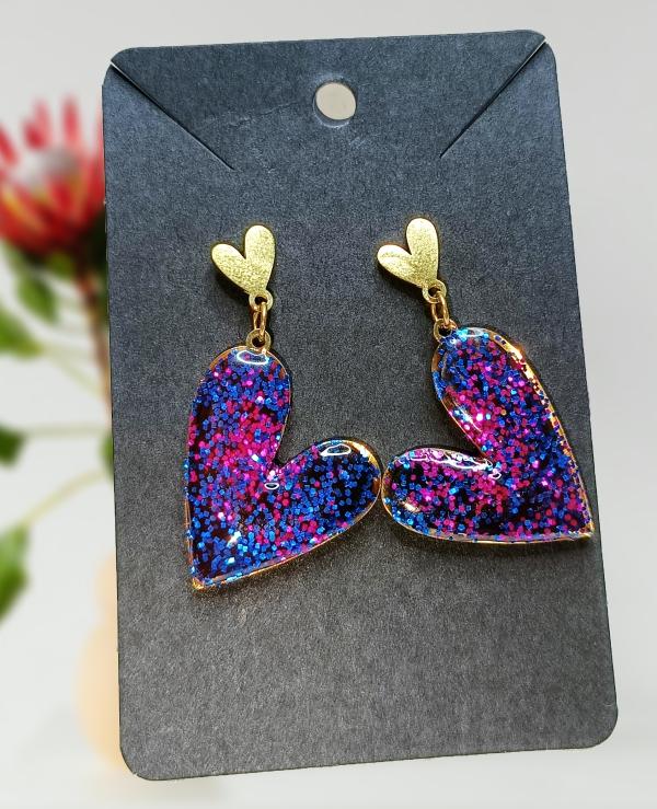 Bleščeči srčasti uhani iz nerjavečega jekla in UV epoksi smole