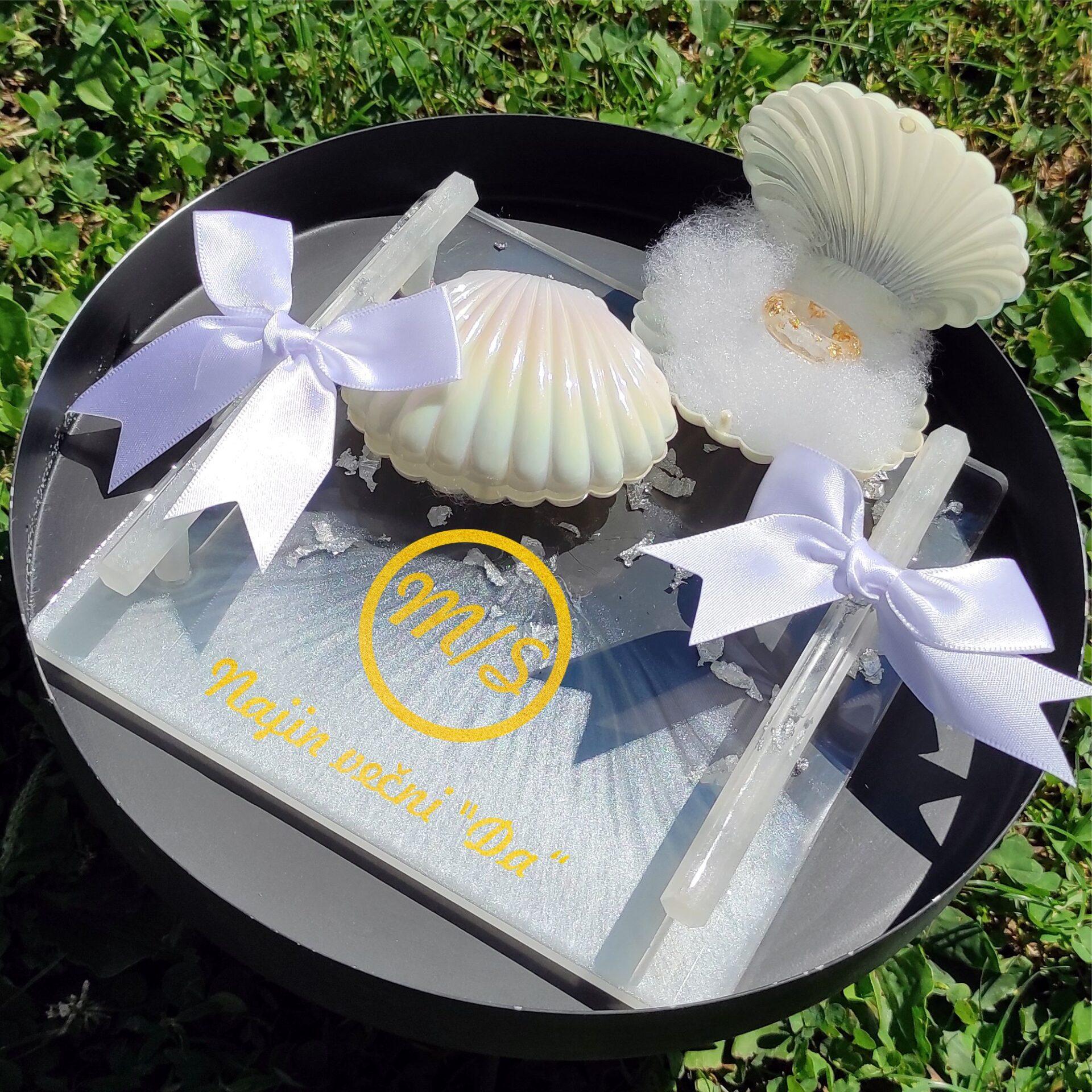 Ta set ni le pripomoček, temveč večen spomin na vajino zaobljubo, ki ga lahko uporabljata kot eleganten dekor.