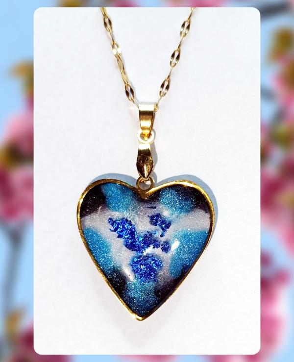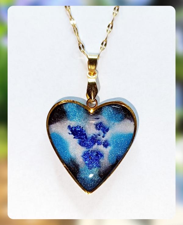Morsko srce: Verižica iz nerjavečega jekla z UV smolo in bleščicami