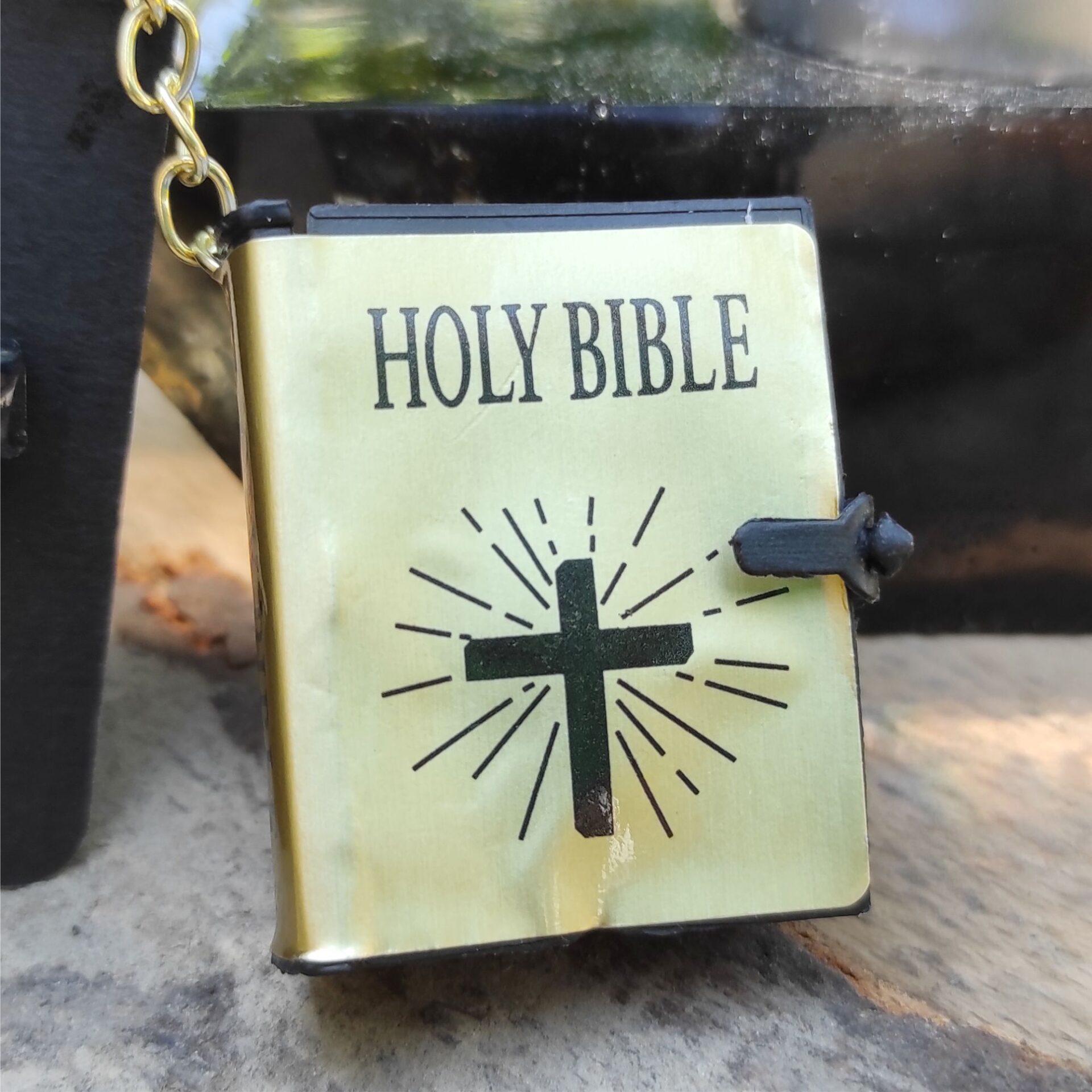 - V darilu je priložena zlata mini Biblija v angleškem jeziku na obesku – simbol vere in upanja.
