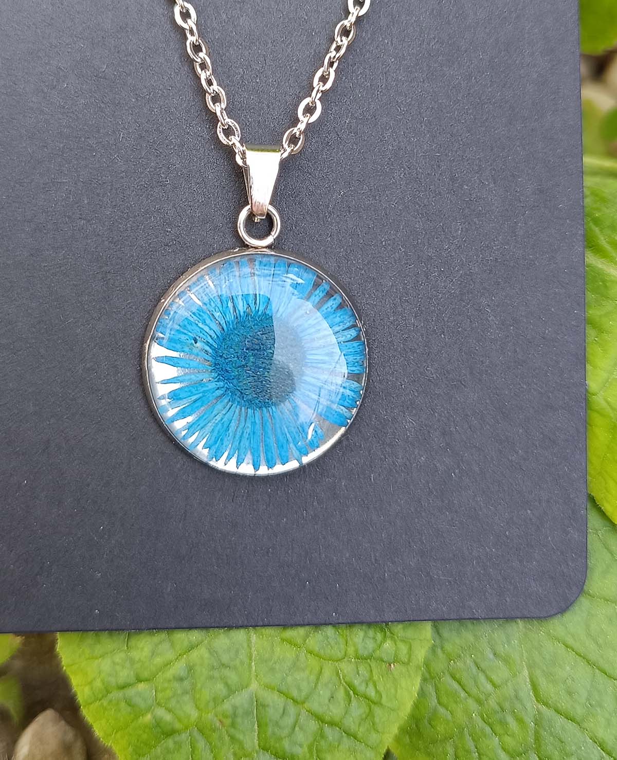 Nežna verižica s srebrnim okroglim obeskom iz prozorne smole in cvetlico