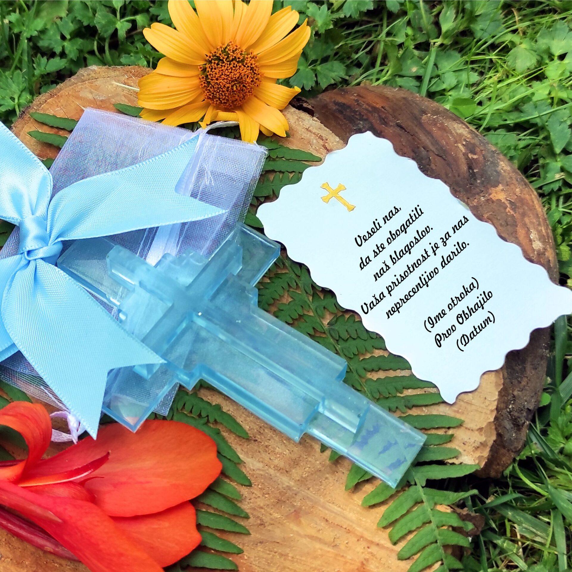 Prilagoditev in izbira barve: Izbirajte med našimi pastelnimi odtenki. V kolikor želite drugo barvo križa ali mašne, nam pišite, da se dogovorimo za unikatno prilagoditev, ki bo ustrezala vašim željam in tematiki dogodka.