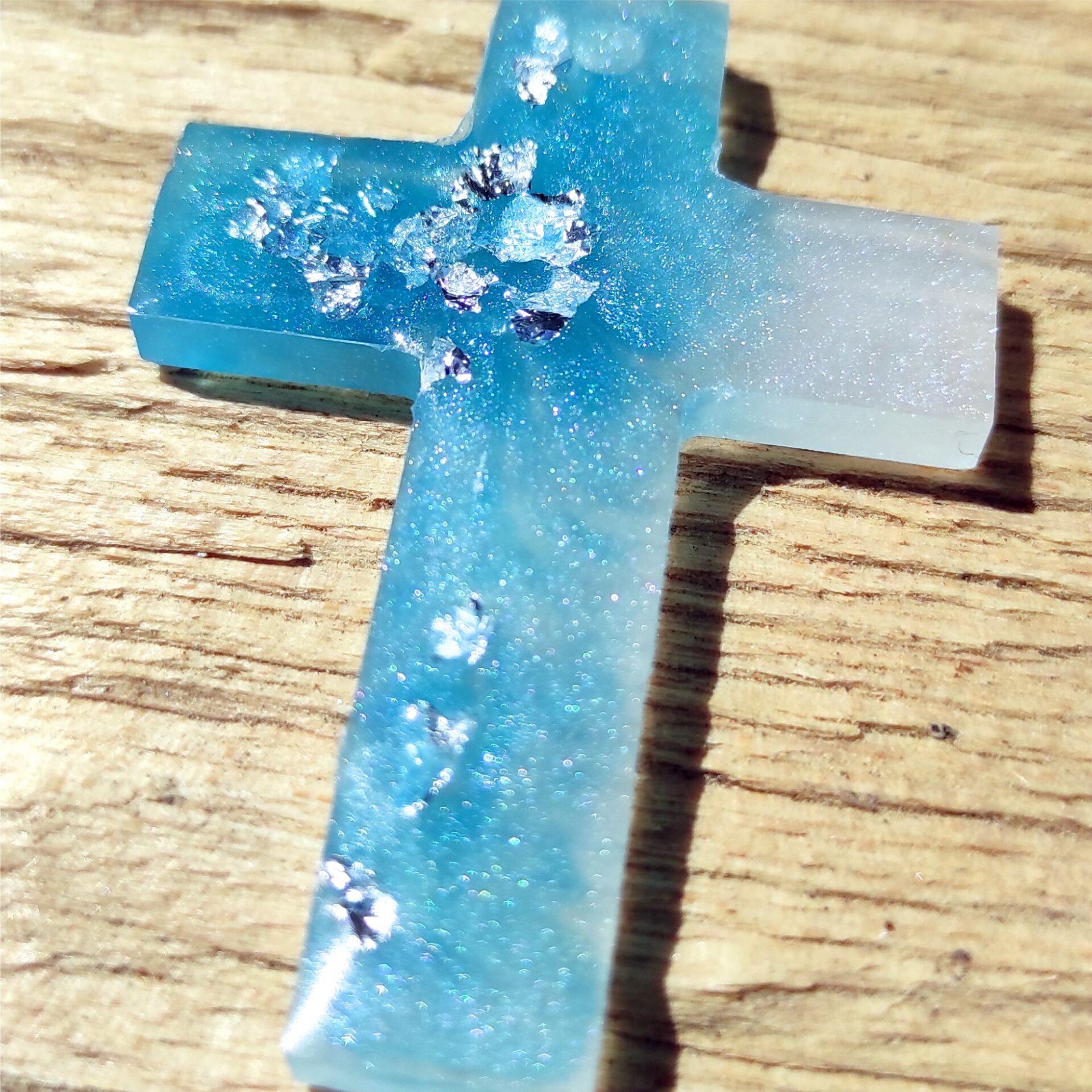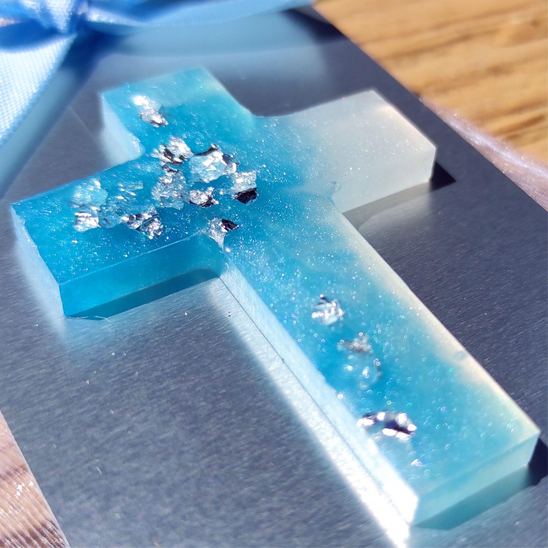 - Ročno izdelan križ iz epoksi smole (magnet):