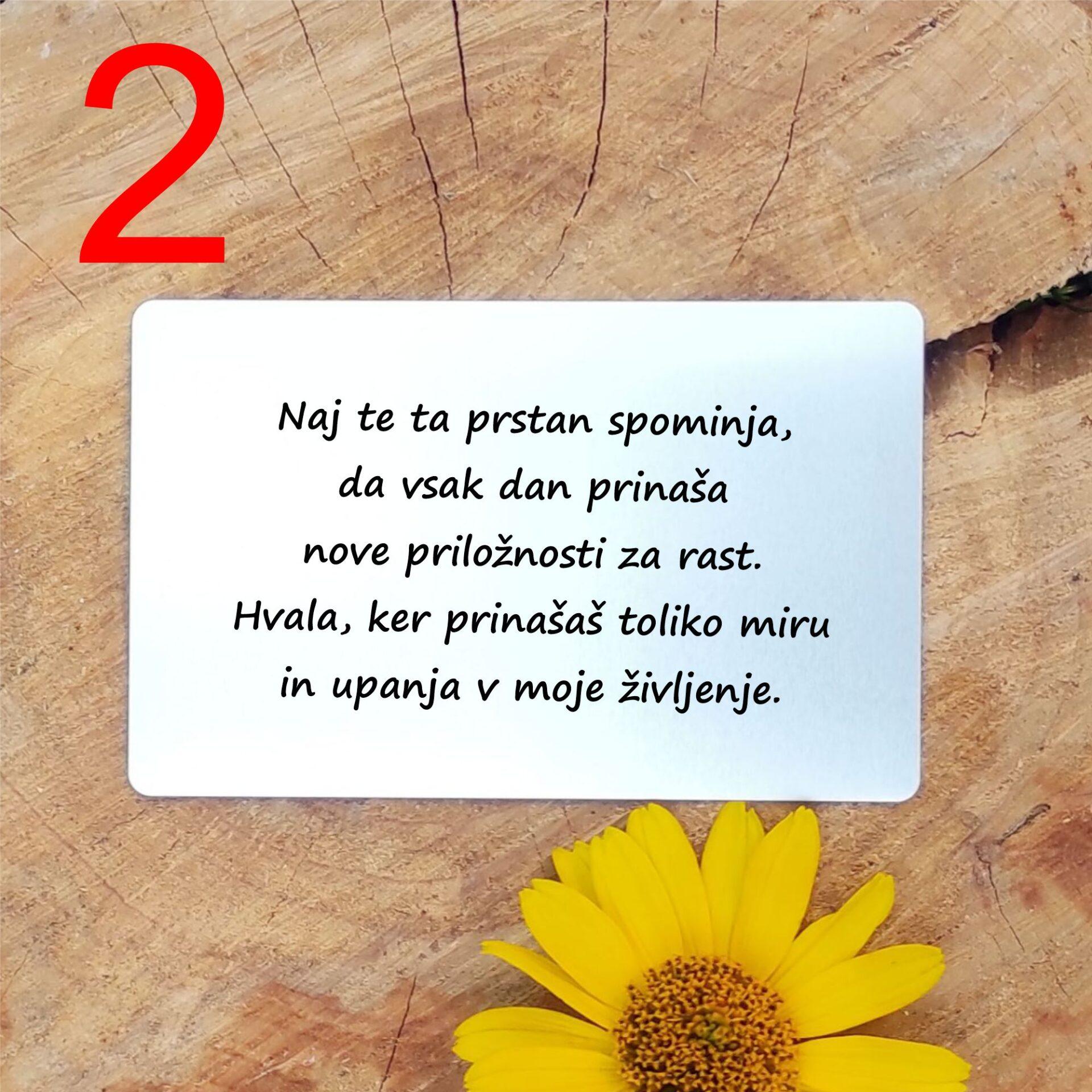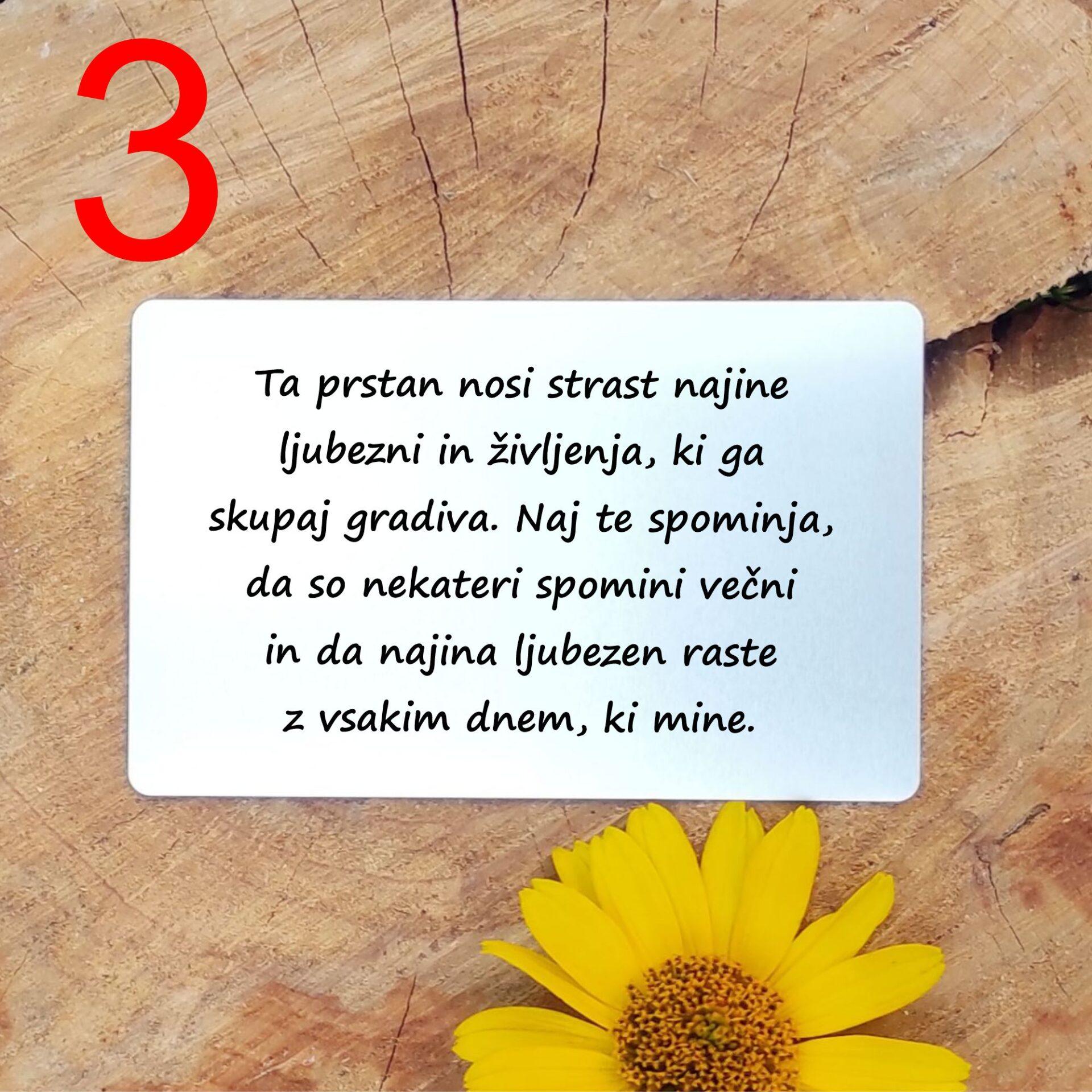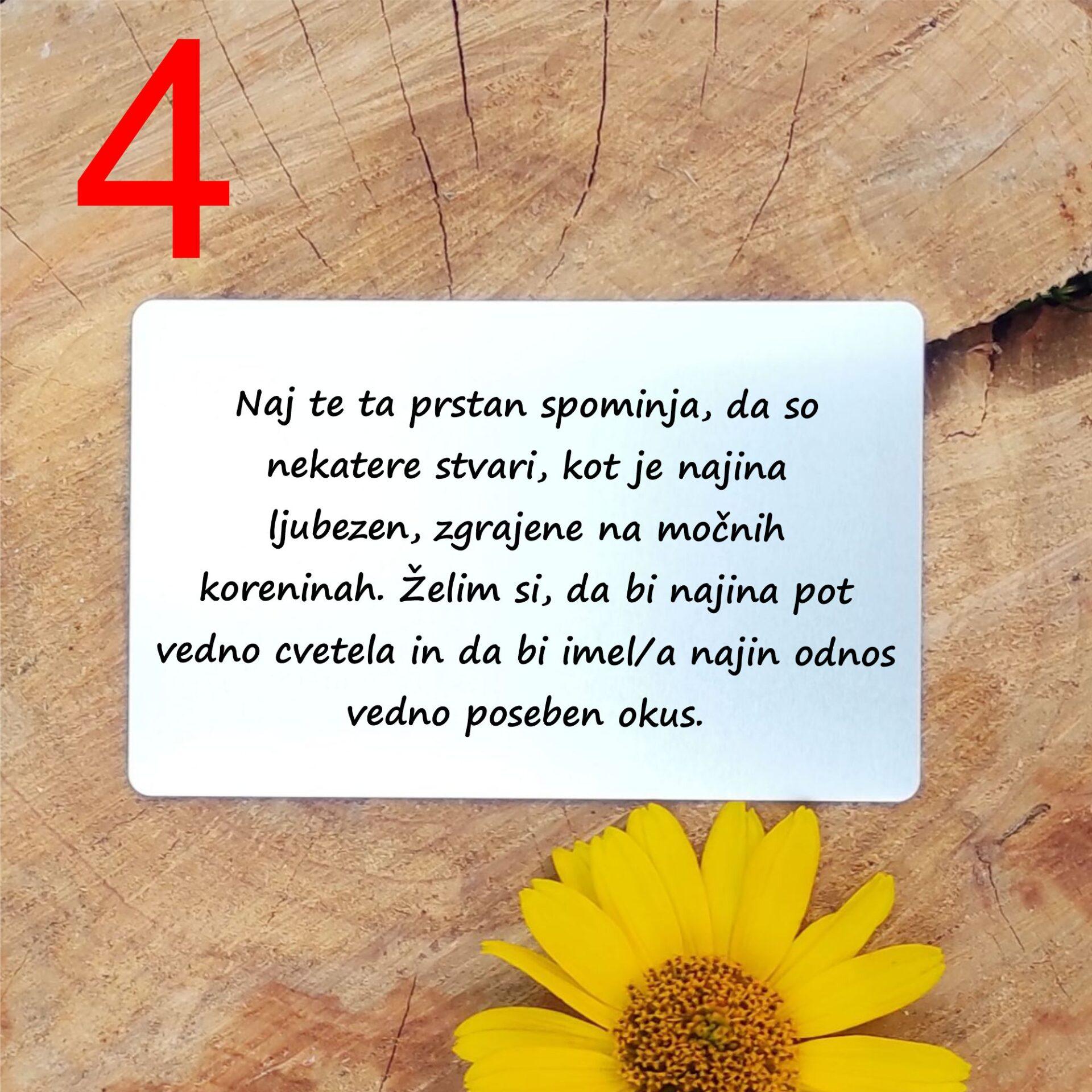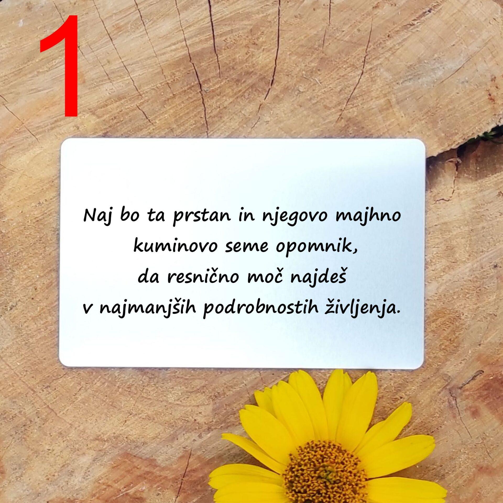 - Personalizirano posvetilo: Priložena je aluminijasta kartica, na katero lahko dodate osebno sporočilo, ali pa izberete eno izmed pripravljenih besedil, ki poudarjajo simboliko semen.