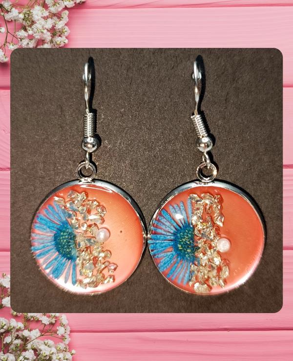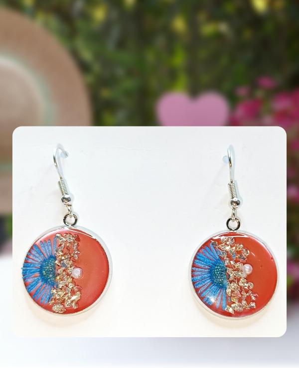 Odkrijte unikatnost ročno izdelanih uhanov “Modra iskrica”. Ti elegantni uhani so narejeni iz nerjavečega jekla in okrašeni z detajli iz UV epoksi smole. Osrednji motiv je čudovit modri cvet, obdan z drobnimi srebrnimi bleščicami in nežnim rožnatim biserom na rdeči podlagi. Ti uhani so popoln dodatek za vsako priložnost in bodo zagotovo pritegnili poglede. Ker so ročno delo, je vsak par unikaten in ga po prodaji ne bo mogoče ponoviti v enaki obliki. Za morebitna personalizirana naročila nas kontaktirajte na info@smolko.shop.